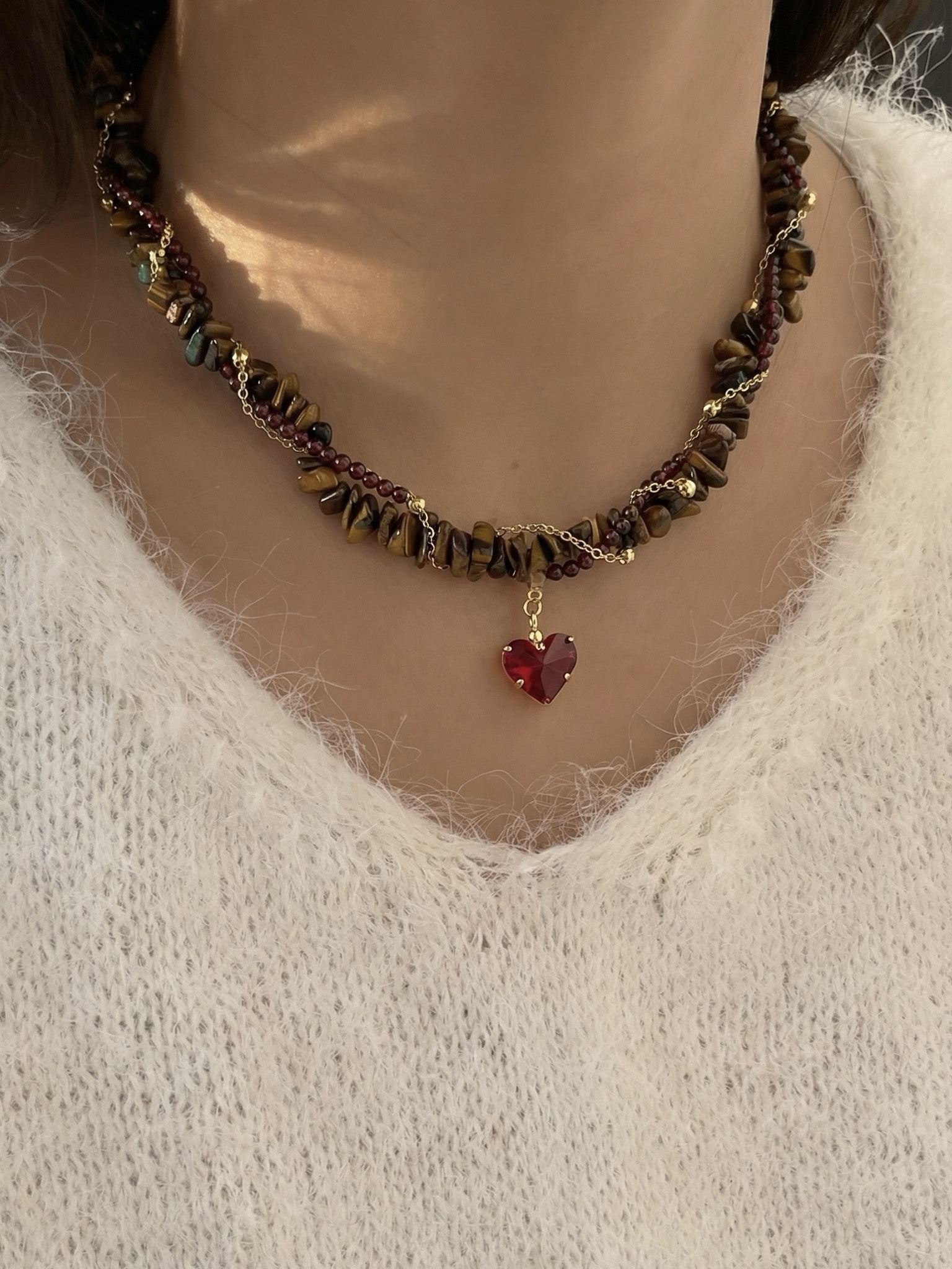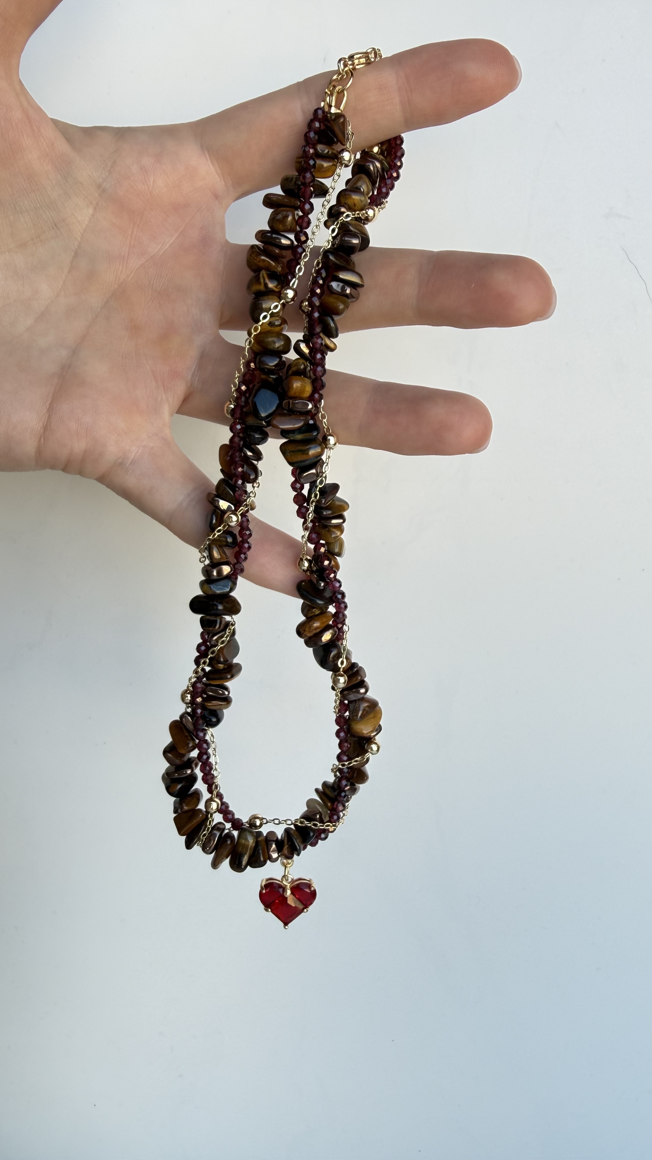 Носите красоту и мощь природы вместе с колье из тигрового глаза и граната! Сочетание насыщенного коричневого перелива камня и глубоких винных оттенков граната подчеркнет вашу индивидуальность и придаст уверенности. Золотистая цепочка элегантно дополнит образ, делая аксессуар подходящим как для повседневного стиля, так и для особых случаев. Позвольте себе сиять вместе с этим изысканным украшением!